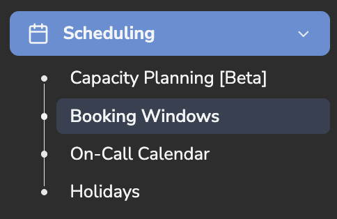 In Scheduling → Booking Windows → Service & Appointment Types, click the document/clipboard icon next to any Service Type or Appointment Type.