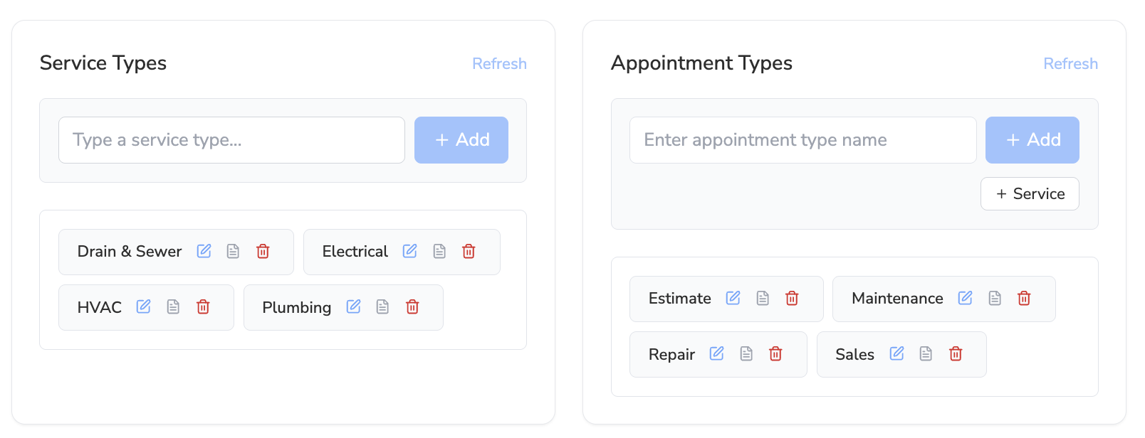 Service and appointment types help Avoca interpret what kind of job this is and how it should be handled. Adding clear guidance for each type improves:- Classification accuracy (the right call reason + outcome)