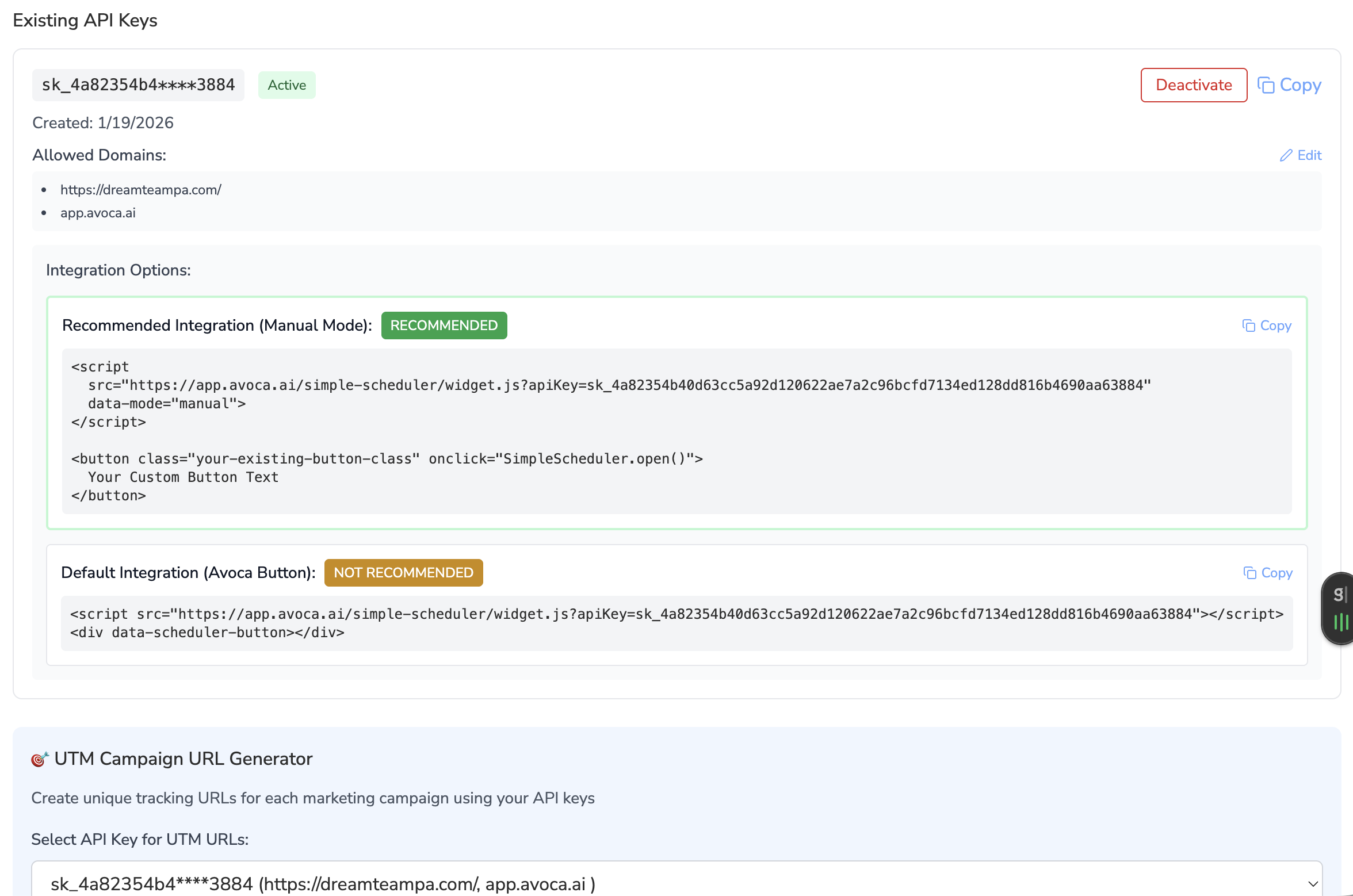 Once configuration is complete, you’ll need to add the Simple Scheduler widget to your website.Generate API Key