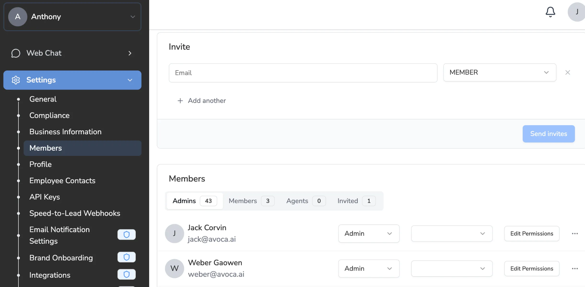 - Make sure you and your team have dashboard access as Admin or Member