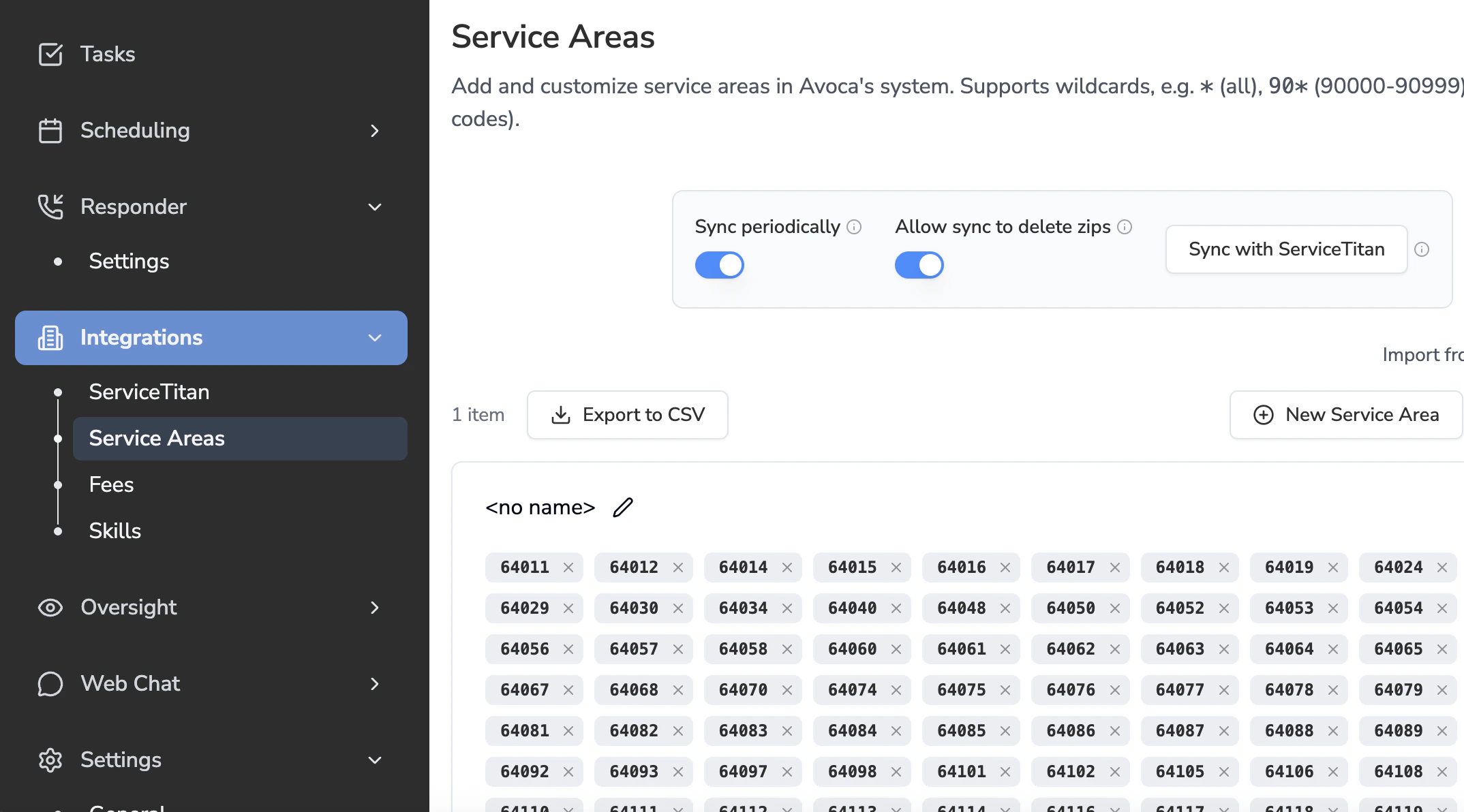- Zip codes are synced from ServiceTitan