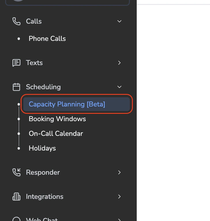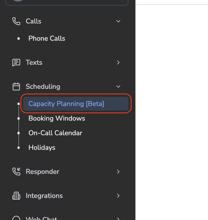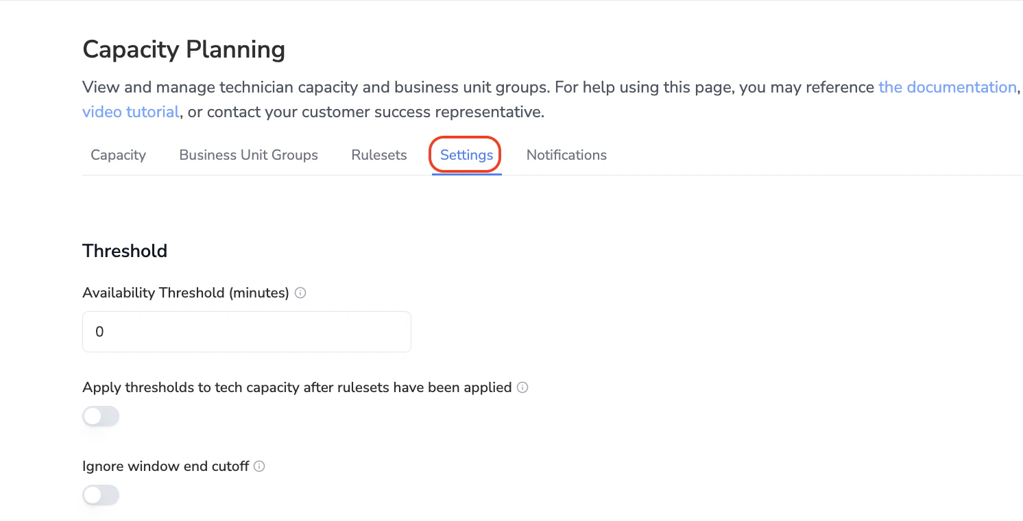 Navigate to your “Capacity Planning” section of your Avoca dashboard, and to the “Settings” section within Avoca Capacity