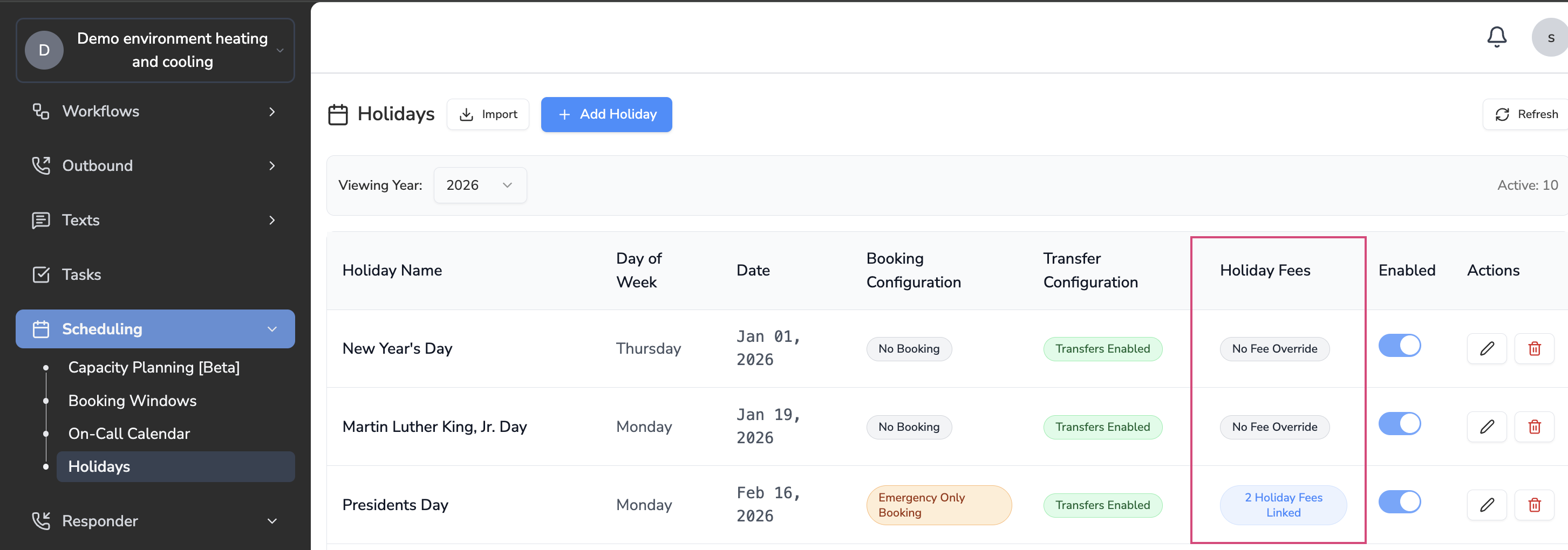 - The holiday fee applies to all appointments booked on that holiday, based on the fee rules you’ve configured