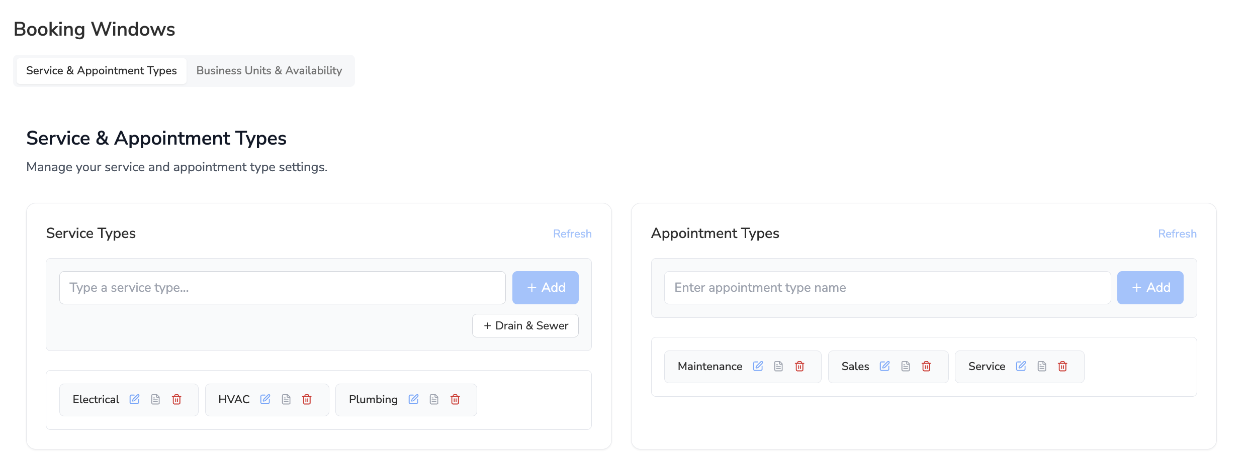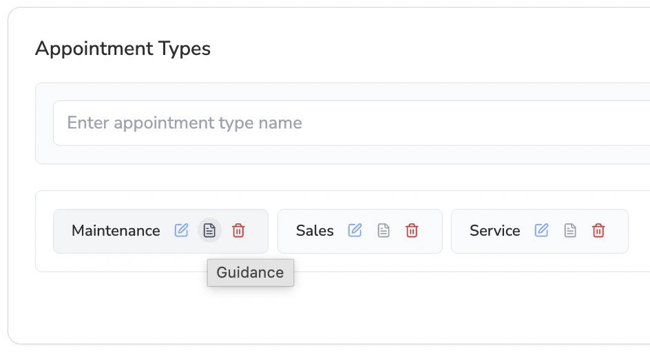 In Appointment Types, find the appointment category you want (examples: Service, Maintenance, Sales/Estimate).