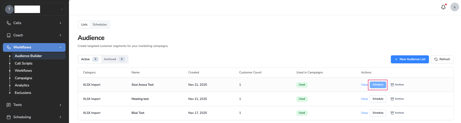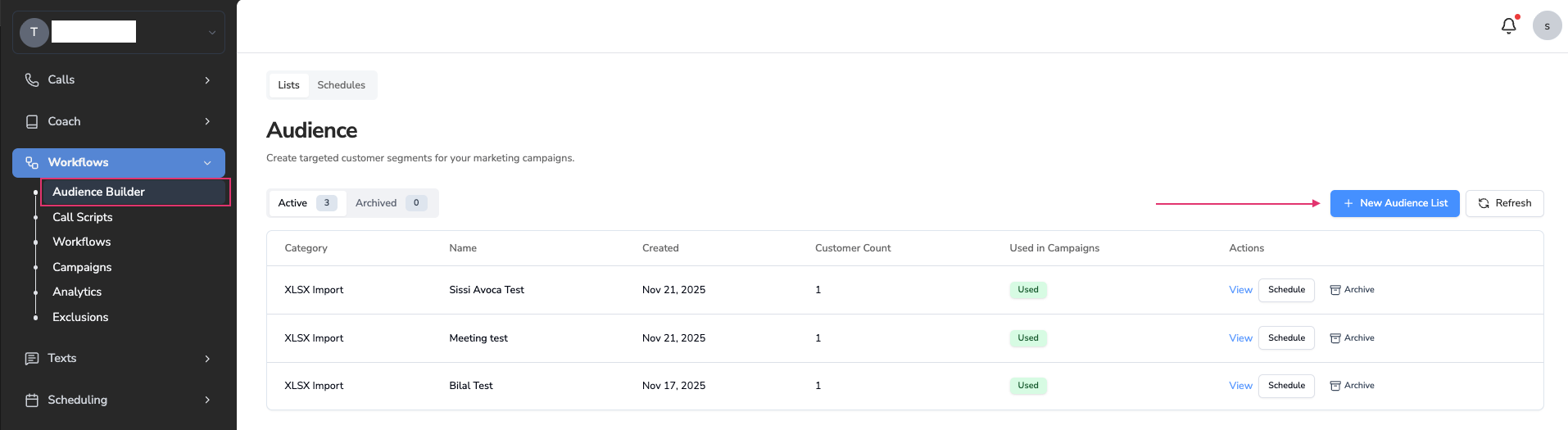 Define who will receive your SMS campaign.Create an Audience List