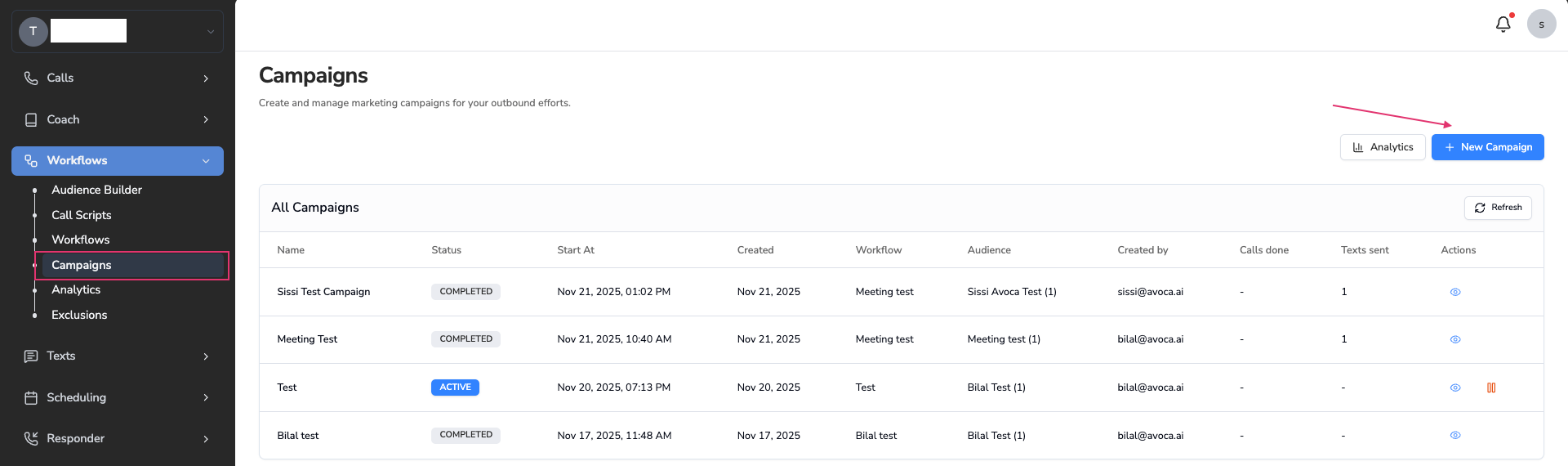 Once you’ve launched your first campaign, you can:- Monitor conversations in your Conversations dashboard