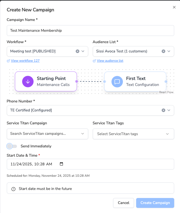 - ServiceTitan Campaign (optional): Attribute booked jobs to a specific ST campaign
