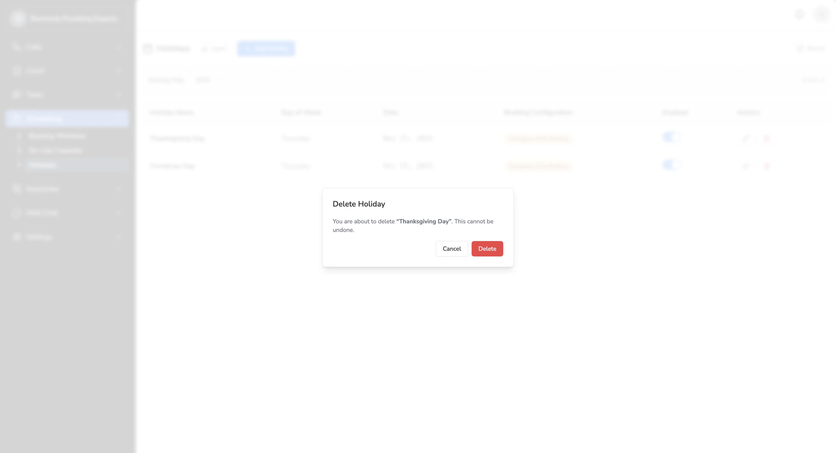 Deleting Holidays