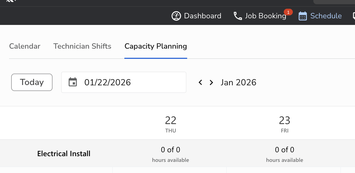 - Technician shifts/time offs (ACP reads these technician shifts to calculate capacity)